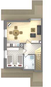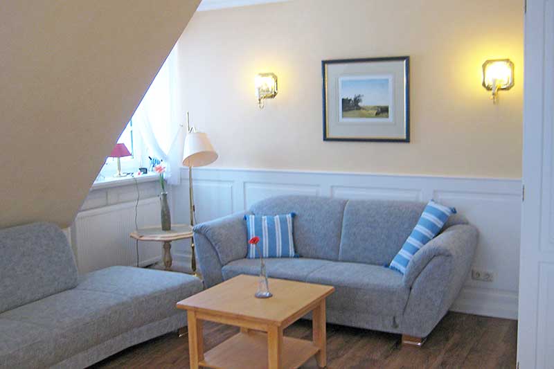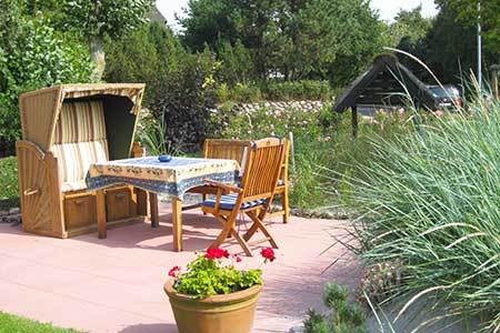 Die Wohnung verfügt über eine gehobene Ausstattung und ist liebevoll im Landhausstil eingerichtet. Sie bietet ein großzügiges Wohn-/Esszimmer mit Küchenzeile, ein Schlafzimmer und Dusche/WC. Sie verfügt zusätzlich über eine separate Außenterrasse in der Grünanlage mit Strandkorb und Gartengarnitur.